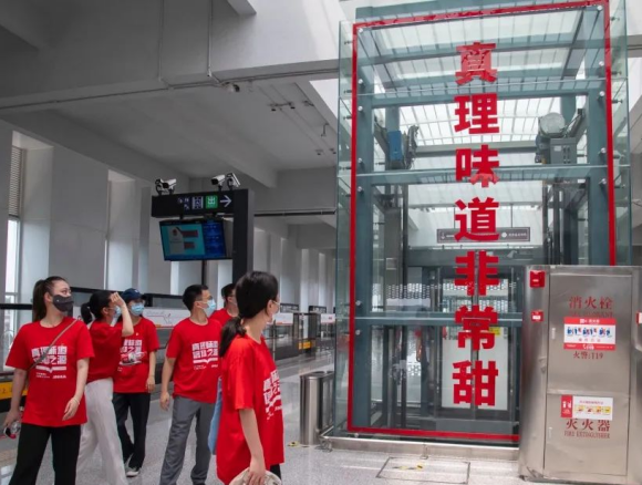 真理的味道有點甜。金華軌道交通融合“真理味道 信仰之源”的故事,打造了真理主題車站——“官塘站”,將真理文化引入了公共空間,讓紅色精神得以薪火相傳。